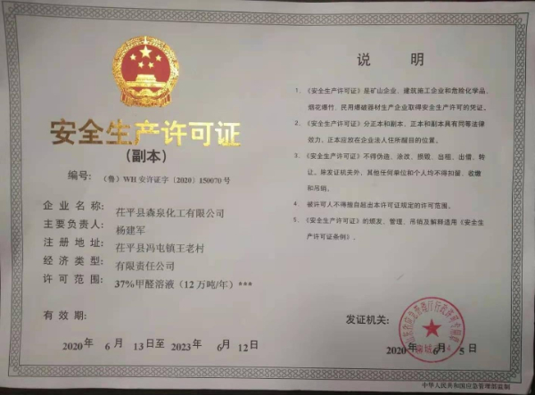 茌平縣森泉化工有限公司 聯系方式:茌平縣馮屯鎮王老工業園 電話:0635-4532308 傳真0635-4532278 公司網址:www.jiufuyu.cn